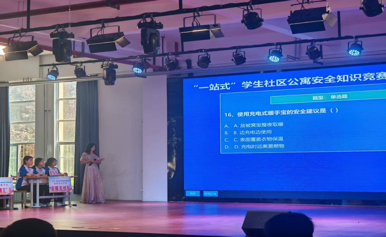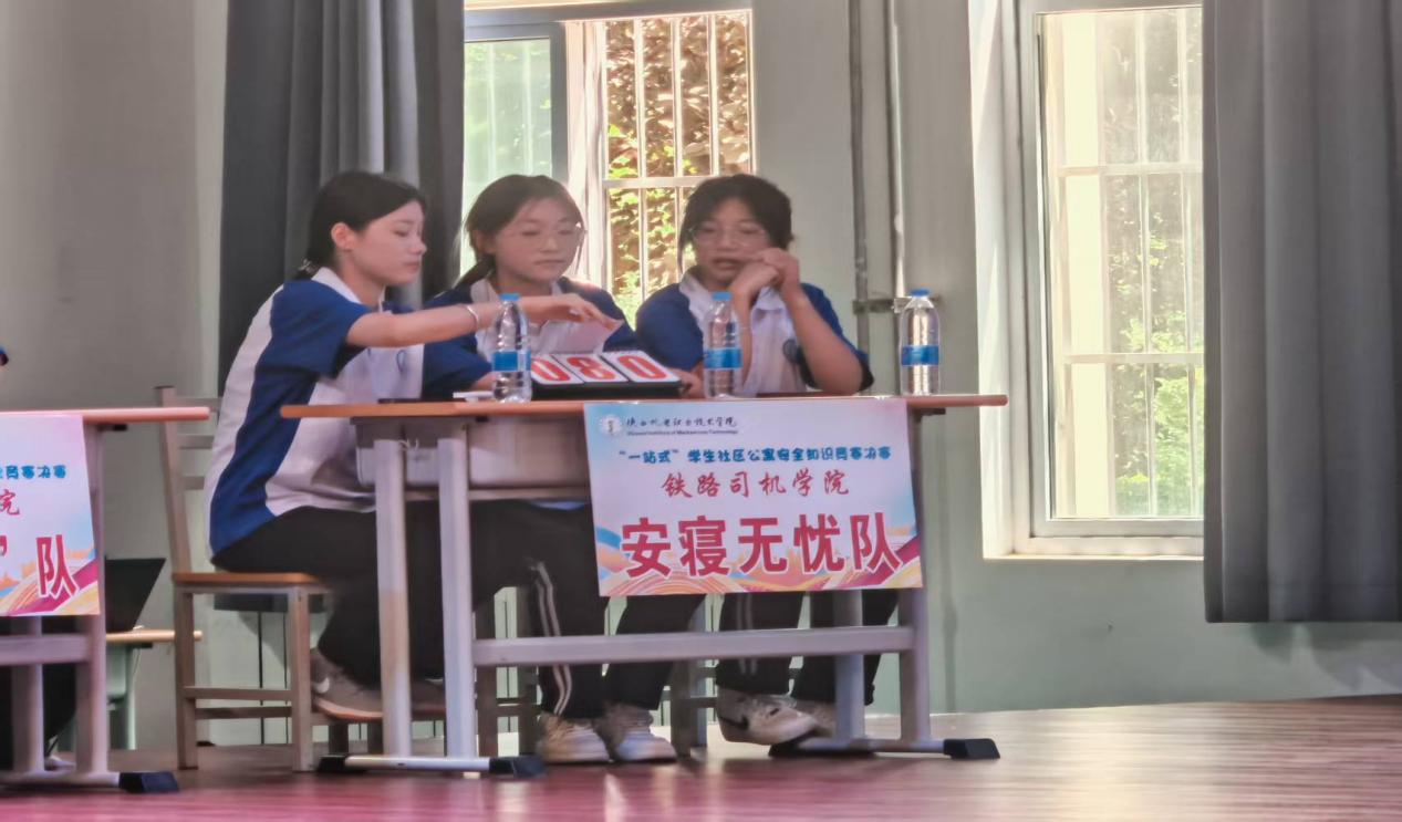 本次决赛聚焦员工公寓日常安全核心领域,内容涵盖消防安全、用电安全、防盗防骗、应急逃生等关键知识点。竞赛环节设计严谨,包含必答题、抢答题、挑战题等多种形式,全方位检验参赛选手对安全规章制度的理解深度与实际应用能力。太阳成集团tyc234cc代表队由24高铁服务1侯枝羽,24高铁服务2杨雅婷、赵佳怡三位同学组成安寝无忧战队。她们在赛前进行了系统、高效的集训,深入钻研安全知识要点,反复模拟实战演练,为决赛奠定了坚实基础。